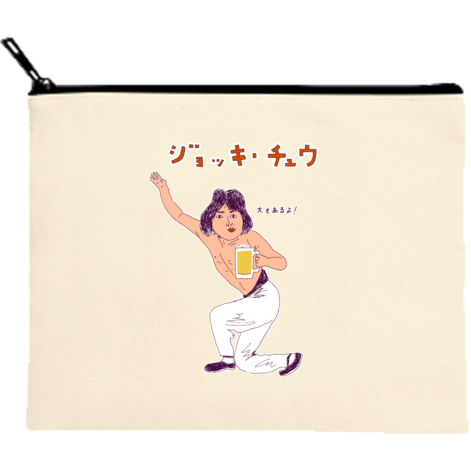 キャンバスフラットポーチ(M)【白プリント有】
