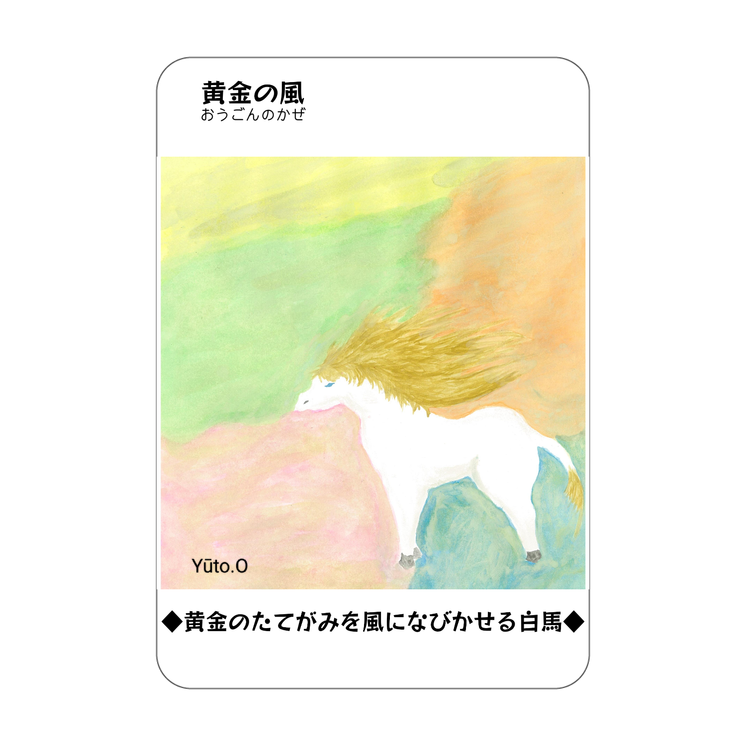 黄金のたてがみを風になびかせる白馬が描かれたアクリル製のコレクションカード。