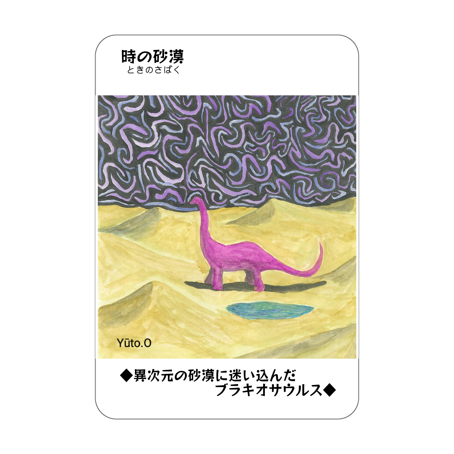 異次元の砂漠に迷い込んだブラキオサウルスが描かれたアクリル製のコレクションカード。