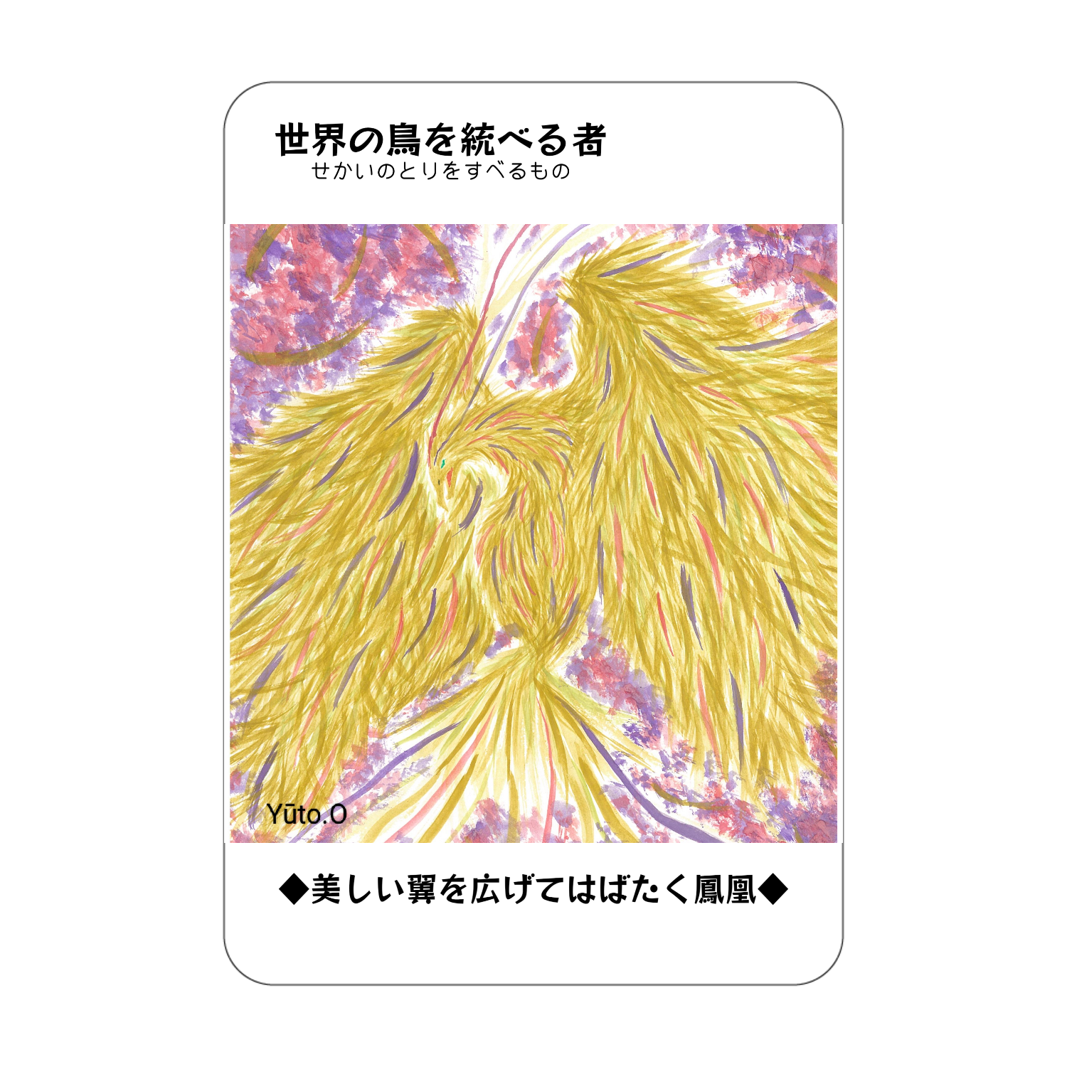 美しい翼を広げてはばたく鳳凰が描かれたアクリル製のコレクションカード。